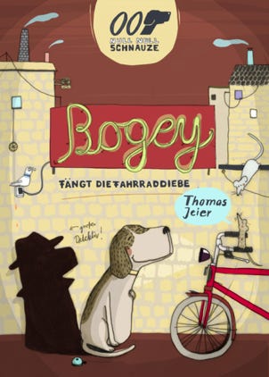 Lukas bekommt ein knallrotes Mountainbike zum Geburtstag geschenkt. Nachts beobachtet Bogey, wie eine dunkle Gestalt das Mountainbike klaut, aber er kann nicht eingreifen. Als Bogey sich auf Verbrecherjagd begibt, sieht er, wie sein Konkurrent, der Windhund-Detektiv Sherlock, einer Lady auf einem pinkfarbenen Bike nachläuft. Er ist nämlich ein wenig farbenblind. Mit Lukas und Lena legt sich Bogey am beliebten Radweg am Fluss auf die Lauer. Es wäre doch gelacht, wenn sie den Dieb nicht schnappten…