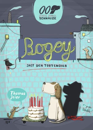 Bogeys Herrchen hat eine fette Geburtstagstorte für Oma Waldemar bestellt. Ausgerechnet die Katze Hammer, die olle Nervensäge, verrät Bogey, dass die Torte aus der Bäckerei Reitmeier gestohlen wurde. Bogey nimmt die Spur des Tortendiebes auf. Auch Sherlock, der Windhund-Detektiv, hat eine verdächtige Tortenwitterung aufgenommen und rennt dabei eine unschuldige Dame mit ihrem gerade gekauft en Kirschkuchen über den Haufen. Doch Bogey lässt sich von all diesen Geschehnissen nicht ablenken und bleibt dem richtigen Dieb dicht auf den Fersen…